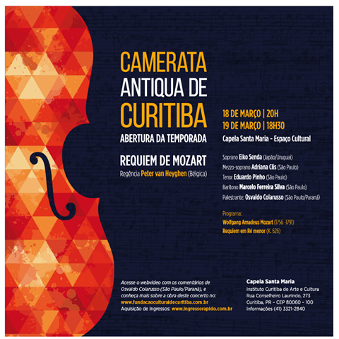 CAMERATA ANTIQUA DE CURITIBA - ABERTURA DE TEMPORADA COM REQUIEM DE MOZART. março 17, 2016 Gerar link Facebook Twitter Pinterest E-mail Outros aplicativos