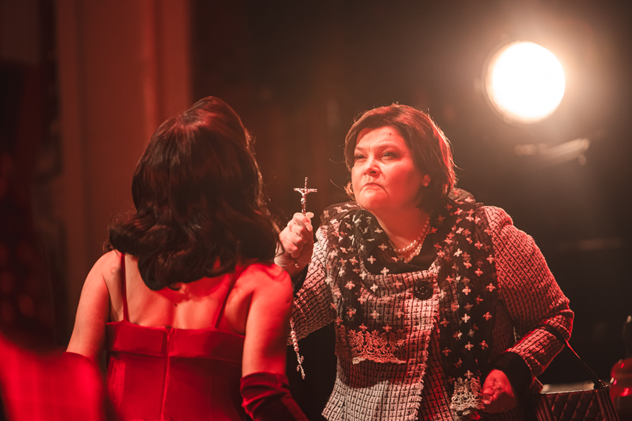 A protagonista é vivida pela mezzo-soprano Carla Rizzi, que retorna à cena com a Orquestra após sua atuação em Auto da Compadecida, a Ópera. Ao seu lado, o tenor Anibal Mancini interpreta Frei Malthus, trazendo ao palco a intensidade do conflito entre desejo e fé. Completam o elenco de solistas Marília Vargas (Loló Ventura), Marcelo Coutinho (Nelson Sarmento), Johnny França (Aramel) e Fernando Portari, que assume o papel de narrador e do próprio autor, Roberto Drummond. A montagem conta ainda com a participação de um coro com 16 vozes, que contribui para a densidade dramática e musical da obra.